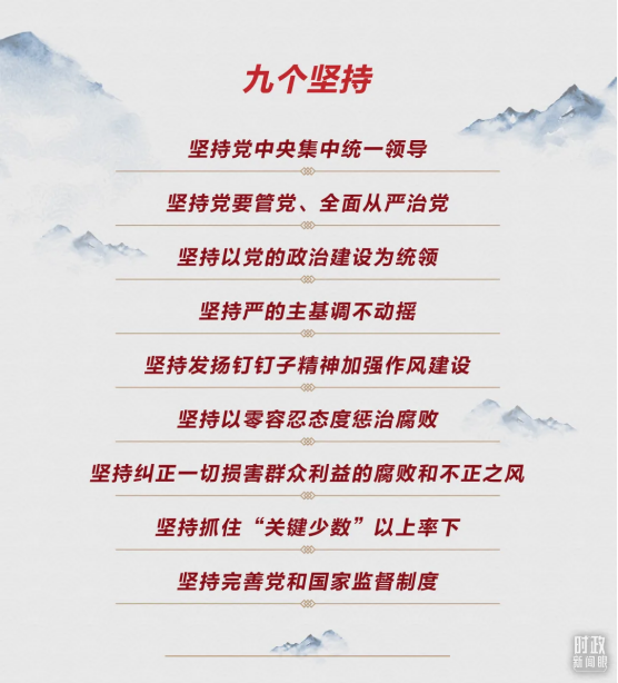 習(xí)近平總書記在會(huì)上還指出,黨的十八大以來,我們深入推進(jìn)管黨治黨實(shí)踐創(chuàng)新、理論創(chuàng)新、制度創(chuàng)新,對(duì)建設(shè)什么樣的長(zhǎng)期執(zhí)政的馬克思主義政黨、怎樣建設(shè)長(zhǎng)期執(zhí)政的馬克思主義政黨的規(guī)律性認(rèn)識(shí)達(dá)到新的高度。這就是“九個(gè)堅(jiān)持”。