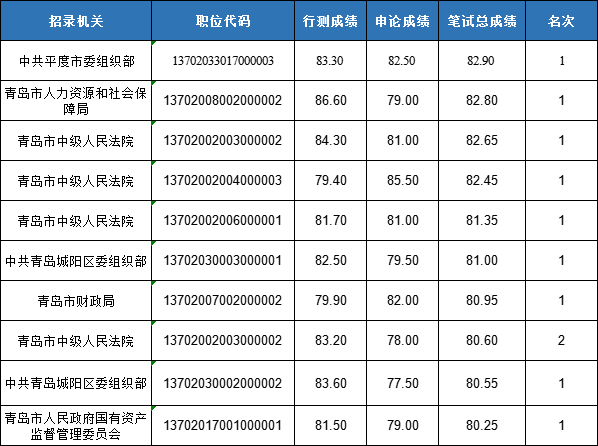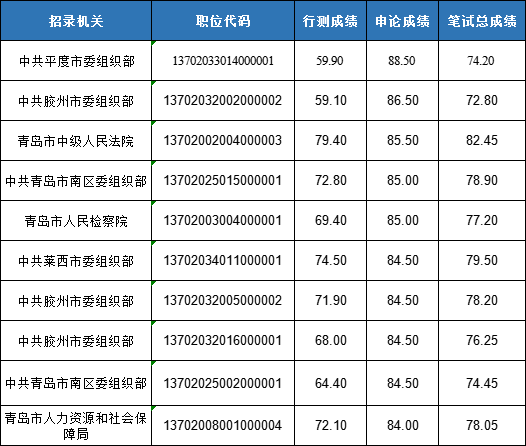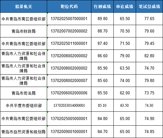 青島進面名單申論成績前十成績