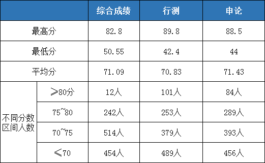 以已發(fā)布的青島面試名單為例,綜合成績最高82.9分(具體如下圖),平均進面分數71.09分。