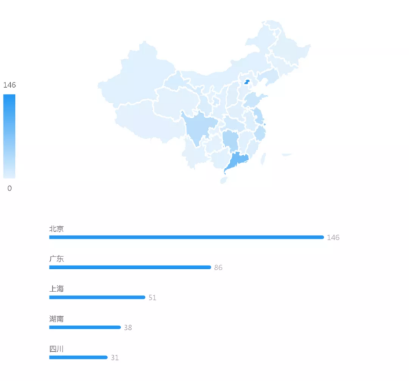 從地域分布來看,當前民事案例主要集中在北京市、廣東省、上海市等地區(qū),分別占比30.10%、17.73%、10.52%。其中北京市的案件量最多,達到146件。(注:此處顯示該條件下案例數(shù)量排名前五的省份。)