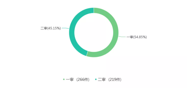 (一審案件266件,二審案件219件。)