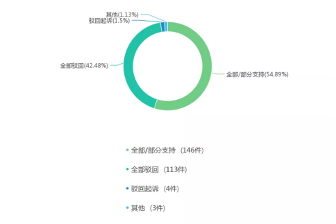 一審結果中,全部/部分支持的有146件,占比為54.89%;全部駁回的有113件,占比為42.48%;駁回起訴的有4件,占比為1.50%,超過一半案件的訴求得到法院的支持或部分支持,凸顯違反適當性的問題頗為可觀,也顯示出法院近年來對投資者保護力度較大。