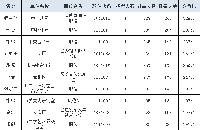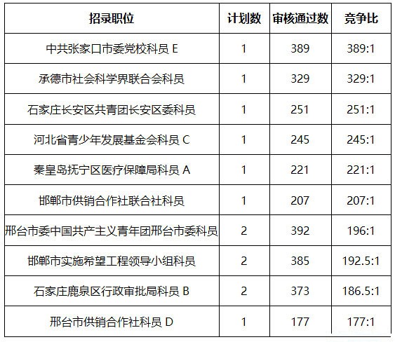 2021年河北省考競(jìng)爭(zhēng)最激烈的十大職位(截至7月29日6時(shí))