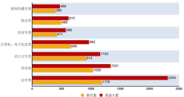 3、專業(yè)要求。三成職位不限專業(yè) 法學(xué)管理學(xué)等7大類專業(yè)較熱門