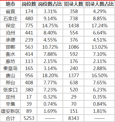 2021河北省考職位表分析