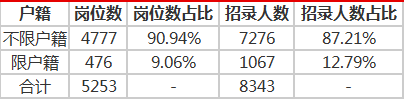 1、戶籍:不限戶籍崗位4777個,招錄人數(shù)7276個,人數(shù)占比87.12%。戶籍以報名首日(2021年3月3日)戶口所在地為準。