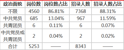 4、政治面貌:關(guān)于政治面貌無限制崗位占比在89.97%。