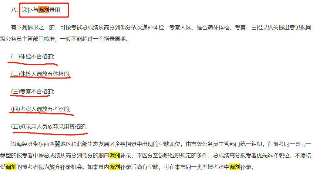 公告截圖可以看出:除了體檢不合格,放棄體檢,資審不合格,放棄資審和錄用人員放棄錄用資格能有遞補(bǔ)機(jī)會外,如有空缺職位還存在遞補(bǔ)調(diào)劑機(jī)會。