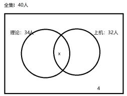 【例題2】40人參加計算機等級考試,只有理論和上機考試均及格方為通過。在理論考試中有34人及格,上機考試中有32人及格,兩次考試中都沒有及格的有4人。通過計算機考試的有多少人?( )