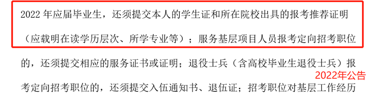 2022年河南相比去年,在面試后針對(duì)于2022應(yīng)屆生有了明確的變化,2022年應(yīng)屆生應(yīng)提供本人學(xué)生證和學(xué)校報(bào)考推薦證明。所以2022年應(yīng)屆生要尤為的注意了,把材料準(zhǔn)備齊全進(jìn)行面試,不要出現(xiàn)材料缺失問(wèn)題。