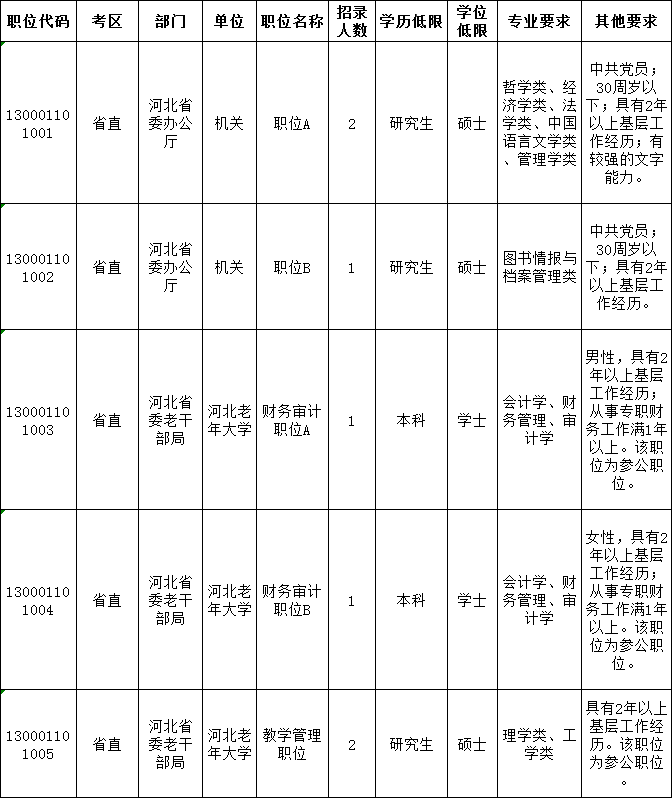 問題3、河北公務(wù)員考試職位表有哪些內(nèi)容?
