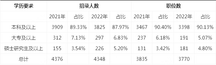 二、??茖W(xué)歷可報(bào)考 九成以上職位要求本科學(xué)歷