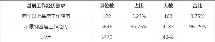 2022山西省考對(duì)工作經(jīng)歷要求比較寬松,本次招考有96.76%名額、96.25%的職位對(duì)工作經(jīng)歷無(wú)要求,此外還有1470人、1272個(gè)職位僅限應(yīng)屆畢業(yè)生報(bào)考,這些職位為應(yīng)屆生參加2022山西公務(wù)員考試大開(kāi)綠燈,為應(yīng)屆生在就業(yè)選擇方面提供了更多機(jī)遇。