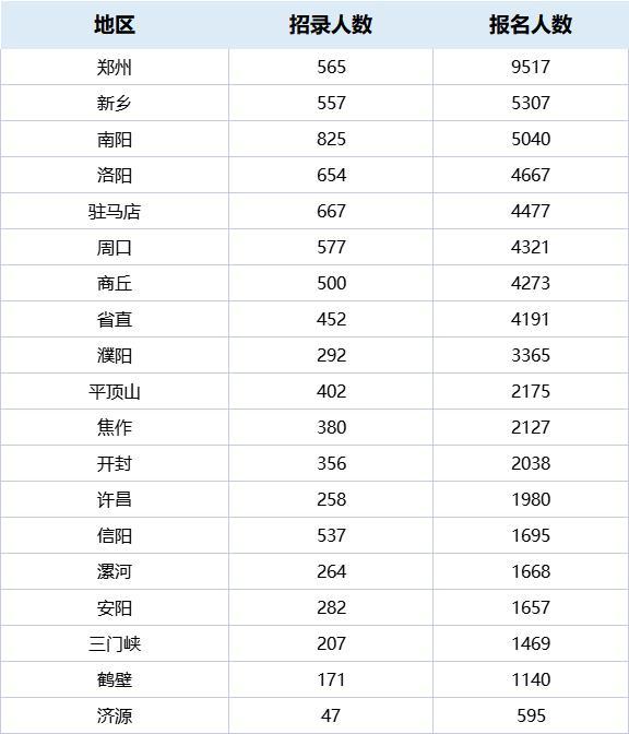 今年省考有多猛?數(shù)據(jù)為證,在2021年省考首日報名人數(shù)為5.4萬人左右,今年直接突破6萬,在今年的首日報名人數(shù)中,鄭州人數(shù)最多,接近1萬人。其次是新鄉(xiāng)和南陽。