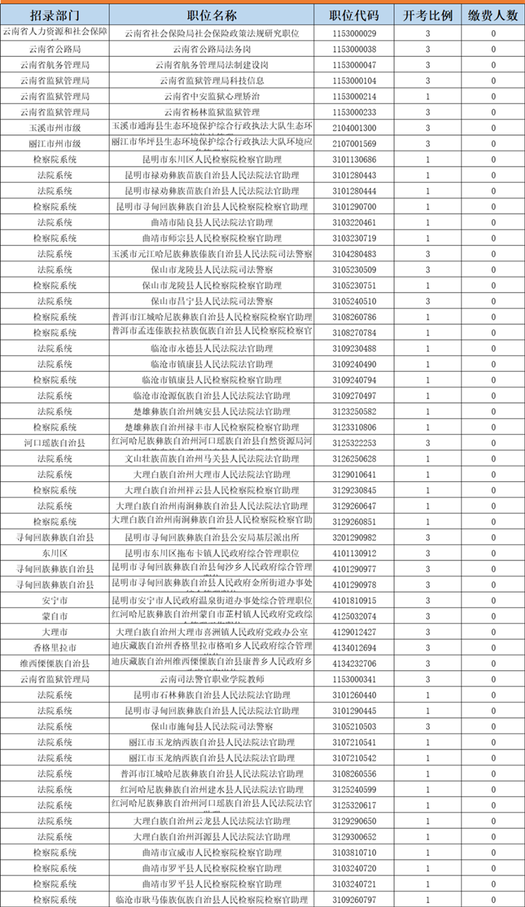 2022云南省考報名56個無人繳費崗位一覽(截止25日9點)