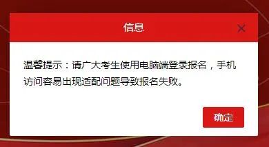 溫馨提示:請(qǐng)廣大考生使用電腦端登錄報(bào)名,手機(jī)訪問容易出現(xiàn)適配問題導(dǎo)致報(bào)名失敗。