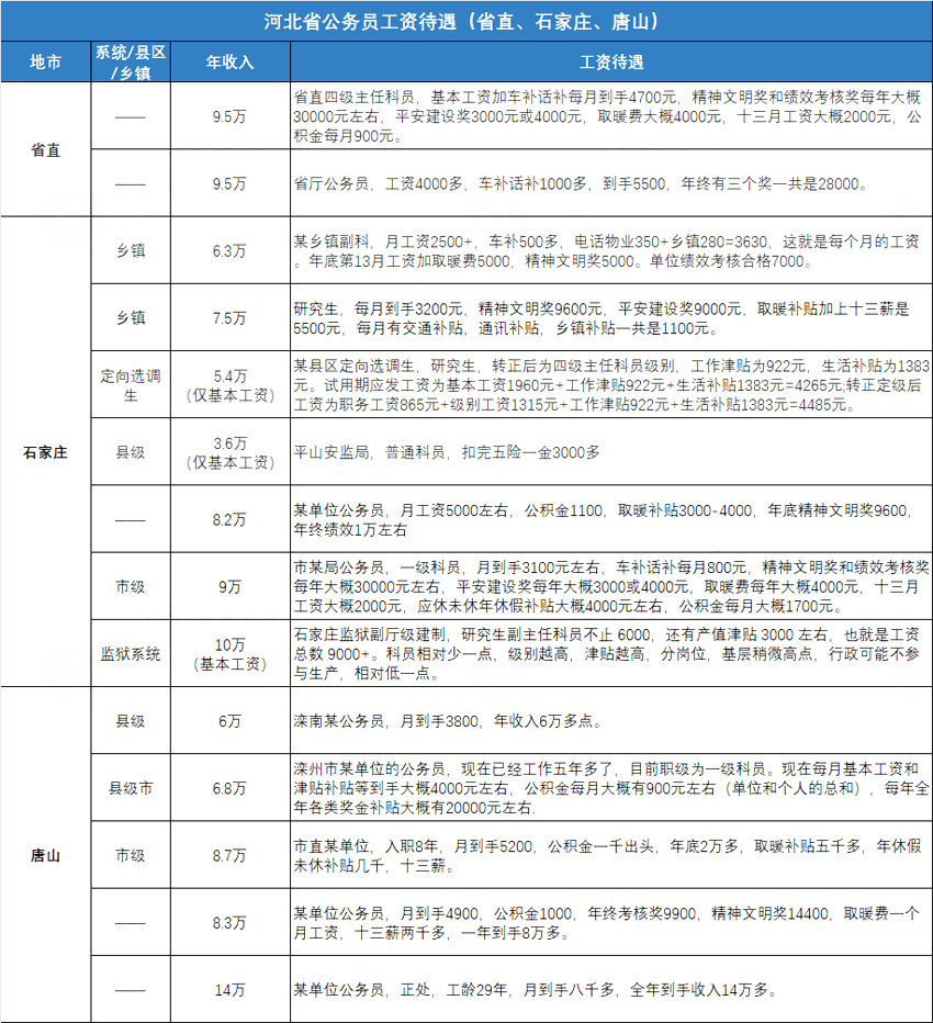 以上就是河北省11個(gè)地市公務(wù)員的工資情況,統(tǒng)計(jì)數(shù)據(jù)有限,且因2022年變動(dòng)較大,僅供小伙伴們參考。