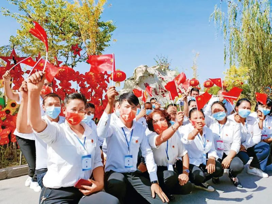 圖為2021年9月30日,新疆溫宿縣克孜勒鎮(zhèn)人大代表開展“我和國旗合個影”主題活動,表達(dá)對祖國的美好祝福,喜迎新中國成立72周年。新疆維吾爾自治區(qū)人大常委會供圖