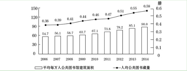B.2014年平均每個公共圖書館擁有20多個閱覽室座席