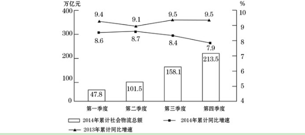 128.2014年全國社會物流總額最高的季度是( )。