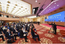 2022年3月3日,全國政協(xié)十三屆五次會議新聞發(fā)布會在北京人民大會堂舉行。為有效防控疫情,本次新聞發(fā)布會沿用前兩年做法,采用網(wǎng)絡(luò)視頻的形式舉行,主會場設(shè)在人民大會堂,分會場設(shè)在梅地亞中心。這是分會場。新華社記者陳鐘昊/攝