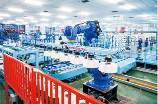 近年來,江蘇省蘇州市吳江區(qū)大力推進制造業(yè)智能化改造和數(shù)字化轉(zhuǎn)型。圖為2021年5月14日,位于吳江區(qū)盛澤鎮(zhèn)的恒力化纖工業(yè)絲智能車間內(nèi),機器人在自動作業(yè)。新華社記者李博/攝