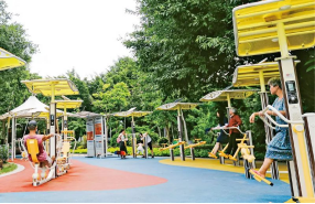 2021年,福建省福州市鼓樓區(qū)西河智慧體育公園向公眾開放。公園內(nèi)設(shè)置30臺智能競賽健身車、橢圓漫步機、體質(zhì)監(jiān)測器、智能健身驛站等智慧健身設(shè)備,采用太陽能供電,市民鍛煉時可看到時間、步數(shù)、卡路里等數(shù)據(jù),有效提升市民參與運動的互動感和熱情度。圖為市民正在體驗智慧健身設(shè)備。中新社發(fā)謝貴明/攝