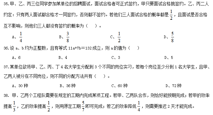 二、數(shù)量關(guān)系,共15題,參考時(shí)限20分鐘,本部分包括數(shù)字推理、數(shù)理計(jì)算。
