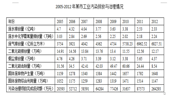 (3)2005-2012年,該市工業(yè)“三廢”(廢水、廢氣、固體廢物)減排效果最好的是工業(yè)廢水。