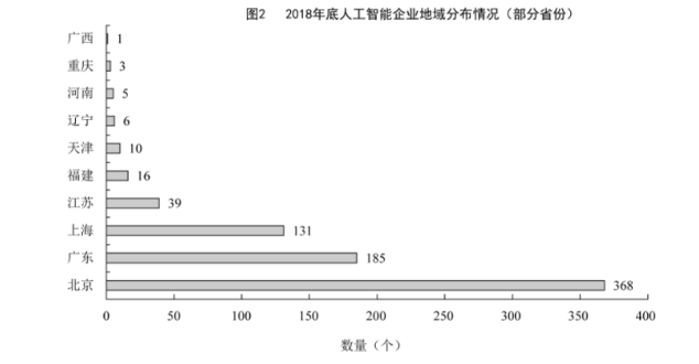 B、截至2018年底,中國人工智能企業(yè)地域分布情況中,廣東企業(yè)數(shù)量最多