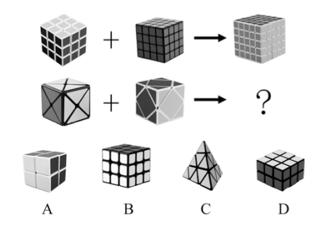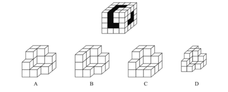 23.從所給的四個(gè)選項(xiàng)中選擇最合適的一項(xiàng),嵌入到題干圖形的黑色區(qū)域使之構(gòu)成一個(gè)完整的立方體: