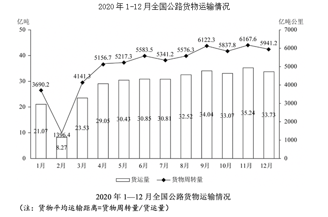 120.關(guān)于2020年全國(guó)公路貨物運(yùn)輸情況的描述,可以推出的是:( )