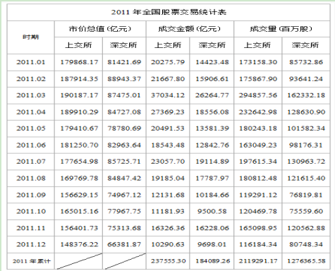 120.以下關(guān)于2011年全國股票交易情況的描述,與資料相符的是( )。