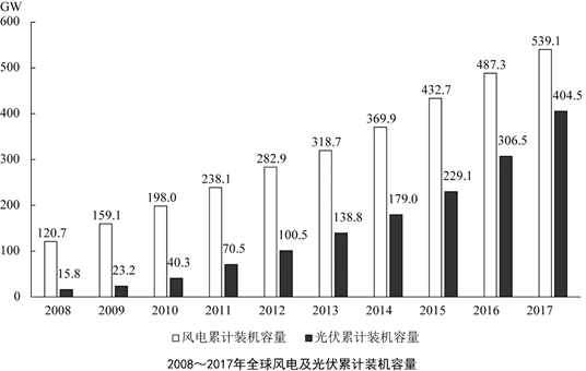 從主要清潔能源類型看,2017年全球?qū)︼L(fēng)能的投資為1070億美元,風(fēng)電新增裝機(jī)容量52.5GW,同比下降3.8%;累計(jì)裝機(jī)容量達(dá)到539.1GW,同比增長11%。2017年全球?qū)夥耐顿Y為1608億美元,同比增長18%;光伏新增裝機(jī)容量99.1GW,同比增長29%;累計(jì)裝機(jī)容量達(dá)到404.5GW。其中,亞太地區(qū)新增裝機(jī)容量73.7GW,累計(jì)裝機(jī)容量221.3GW。(累計(jì)裝機(jī)容量不含報(bào)廢機(jī)器的裝機(jī)容量)