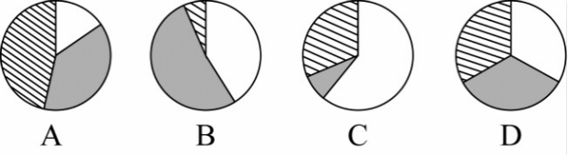 89、以下哪個(gè)餅圖最符合2017年4月T地區(qū)限額以上商品銷售額中不同規(guī)模的企業(yè)銷售額占比關(guān)系?( )