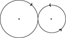 18、某公園雇傭一名小丑表演騎獨(dú)輪車。獨(dú)輪車車輪直徑為50厘米,小丑沿如圖所示8字形軌跡騎行。軌跡為相切的兩個(gè)圓,兩個(gè)圓面積比是16:9,小圓直徑為15米。問小丑沿8字形軌跡騎行一圈,車輪轉(zhuǎn)動(dòng)了多少圈?( )