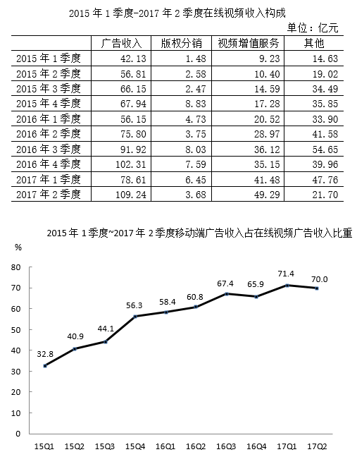 C.2017年2季度,在線視頻其他業(yè)務(wù)收入同比下降了50%以上
