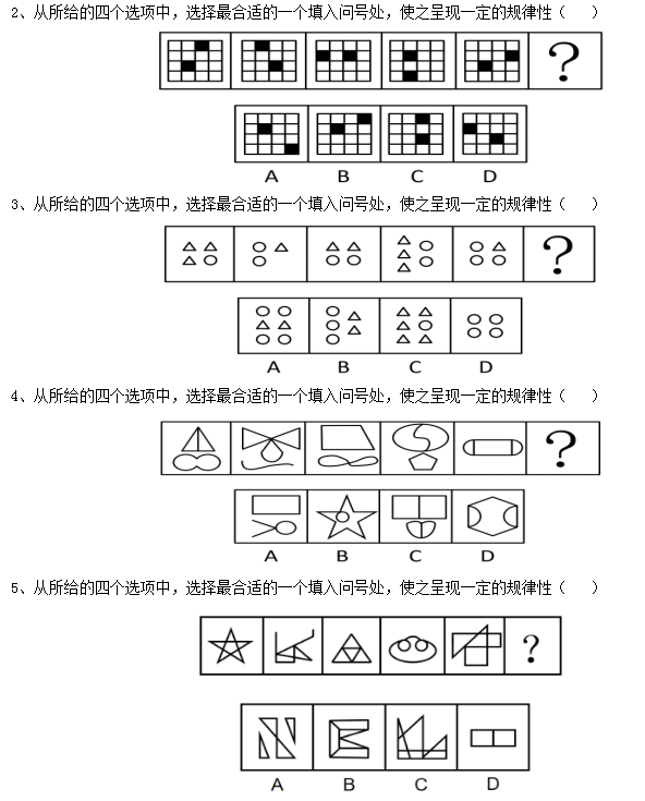 1、從所給的四個(gè)選項(xiàng)中,選擇最合適的一個(gè)填入問號(hào)處,使之呈現(xiàn)一定的規(guī)律性( )