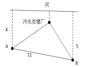 19.如下圖所示,某條河流一側(cè)有A、B兩家工廠,與河岸的距離分別為4km和5km,且A與B的直線距離為11km。為了處理這兩家工廠的污水,需要在距離河岸1km處建造一個(gè)污水處理廠,分別鋪設(shè)排污管道連接A、B兩家工廠。