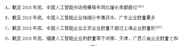 112.2015至2018年,中國人工智能市場規(guī)模同比增長率最高的年份是:( )