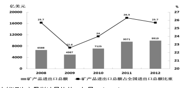 圖2 2008—2012年全國礦產(chǎn)品進(jìn)出口情況
