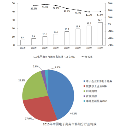 A、2018年中國電子商務(wù)市場交易規(guī)模將超過2016年的1.5倍