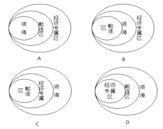 99.根據(jù)《聯(lián)合國海洋法公約》,下列四幅示意圖中,關(guān)于三個區(qū)域位置,表示正確的是( )