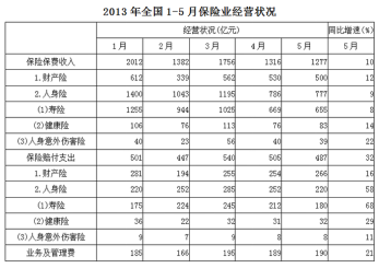 120.關(guān)于2013年1—5月保險(xiǎn)業(yè)經(jīng)營狀況,能夠從上述資料中推出的是:( )