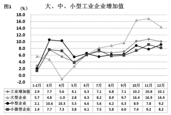 B、全年小微型企業(yè)增加值同比增量低于中型企業(yè)
