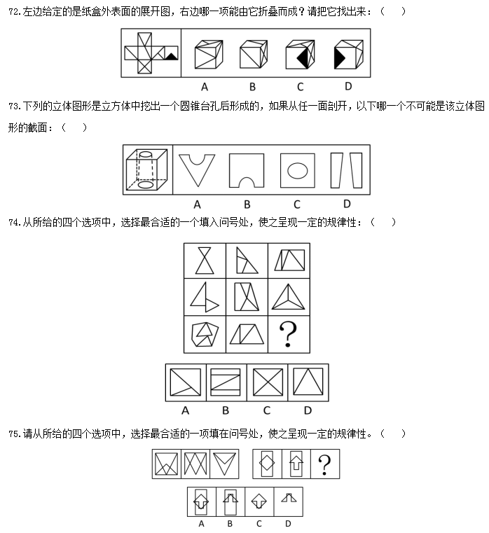 二、言語理解,共40題,本部分包括表達(dá)與理解兩方面的內(nèi)容,請(qǐng)根據(jù)題目要求選出答案。