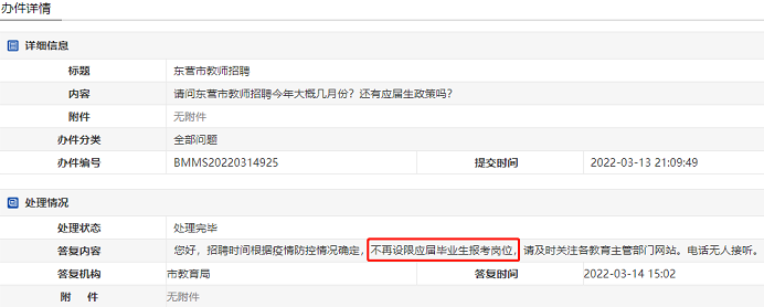 據東營市教育局答網友問,2022東營教師招聘,不再設限應屆生報考崗位!詳情如下: