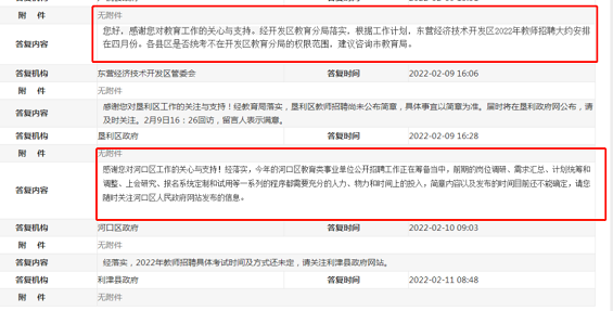 以上,其實在今年2月,東營教師招聘公告發(fā)布時間就初見端倪,各區(qū)縣在政府門戶網站“網上民聲”專欄中分別回復了關于東營教招的消息,其中,經濟技術開發(fā)區(qū)在回復中表示:“東營經濟技術開發(fā)區(qū)2022年教師招聘大約安排在四月份?!?/p>