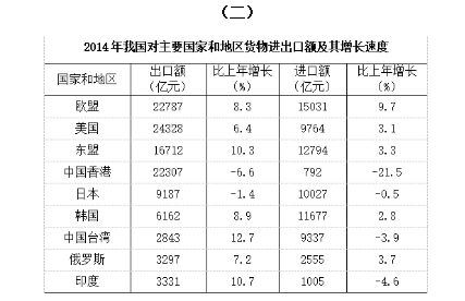 112.2014年我國對主要國家和地區(qū)的進出口情況為逆差的有幾個( )