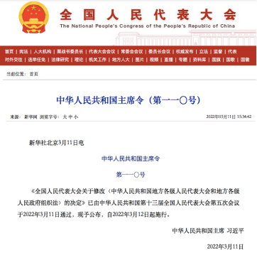 (2022年3月11日第十三屆全國人民代表大會(huì)第五次會(huì)議通過)